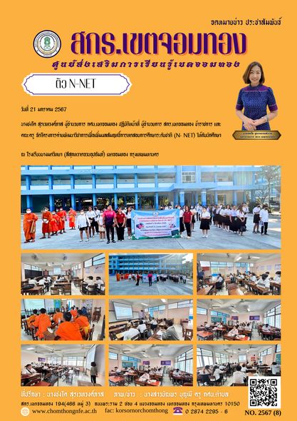 วันที่ 21 มกราคม 2567 นางชงโค สุรเวทวงศ์ภาส ผู้อำนวยการ กศน.เขตจอมทอง ปฏิบัติหน้าที่ ผู้อำนวยการ สกร.เขตจอมทอง ข้าราชการ และคณะครู จัดโครงการค่ายพัฒนาวิชาการเพื่อเพิ่มผลสัมฤทธิ์การทดสอบการศึกษาระดับชา