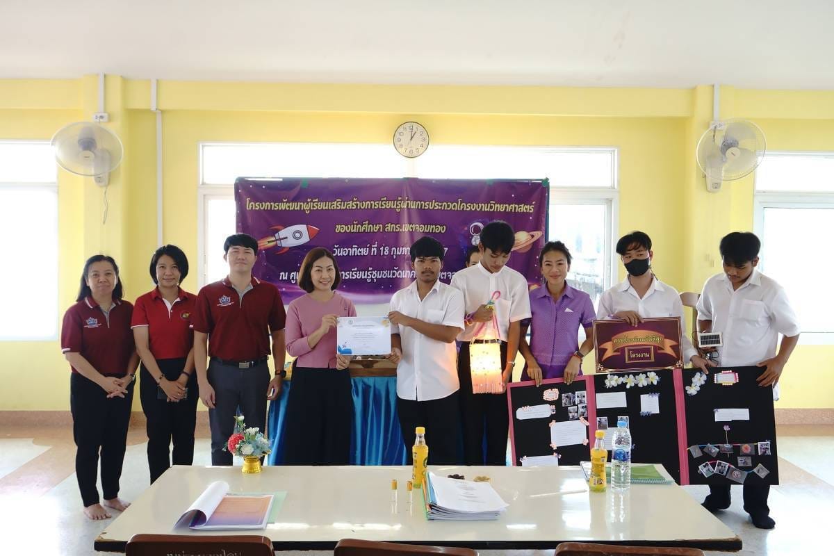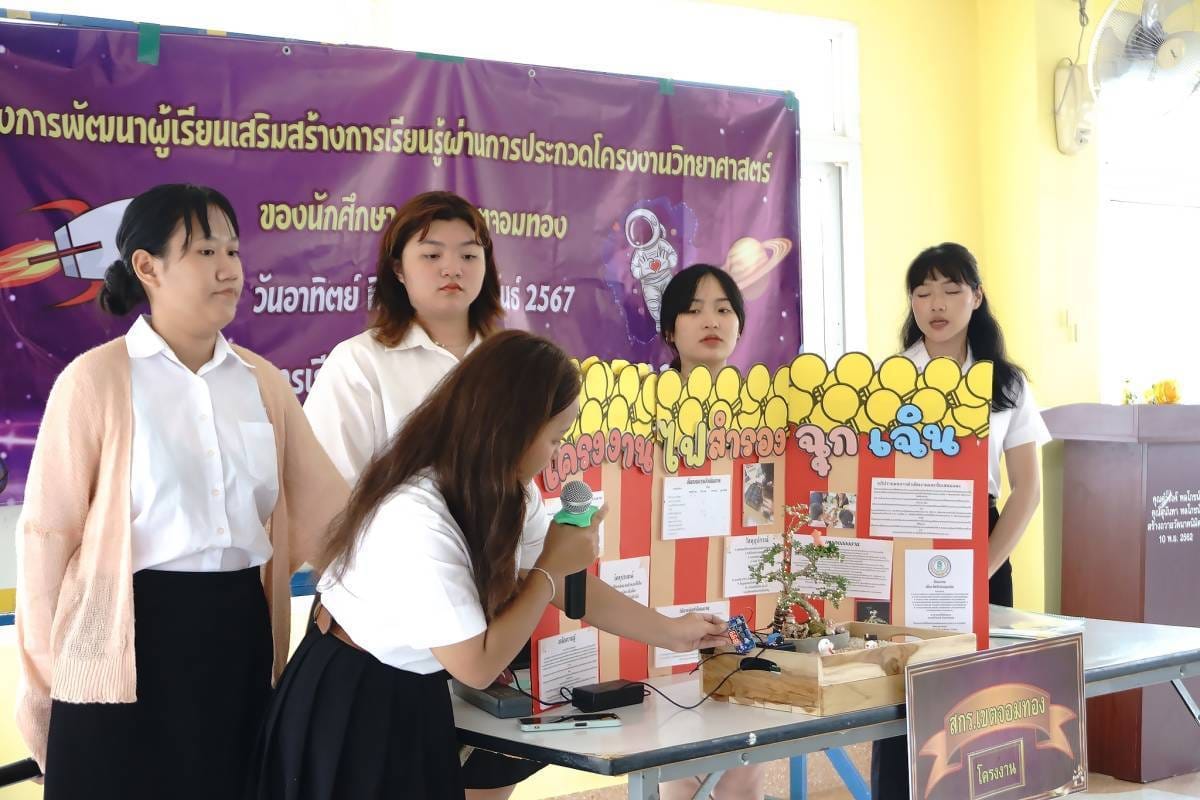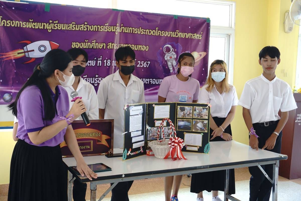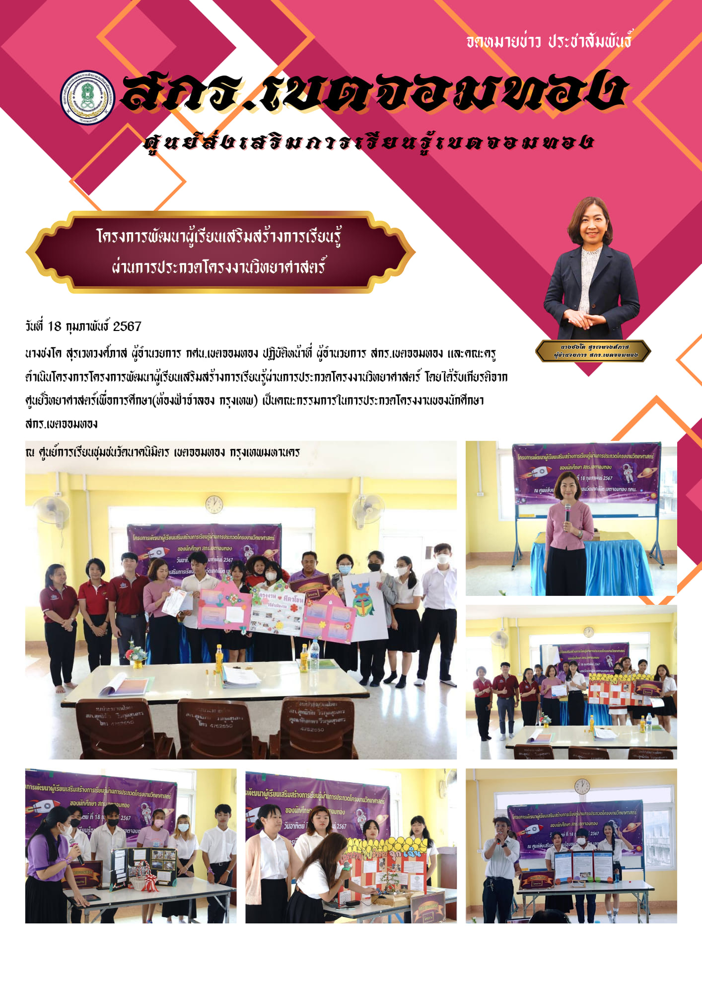 วันที่ 18 กุมภาพันธ์ 2567 นางชงโค สุรเวทวงศ์ภาส ผู้อำนวยการ กศน.เขตจอมทอง ปฏิบัติหน้าที่ ผู้อำนวยการ สกร.เขตจอมทอง และคณะครู ดำเนินโครงการโครงการพัฒนาผู้เรียนเสริมสร้างการเรียนรู้ผ่านการประกวดโครงงานว