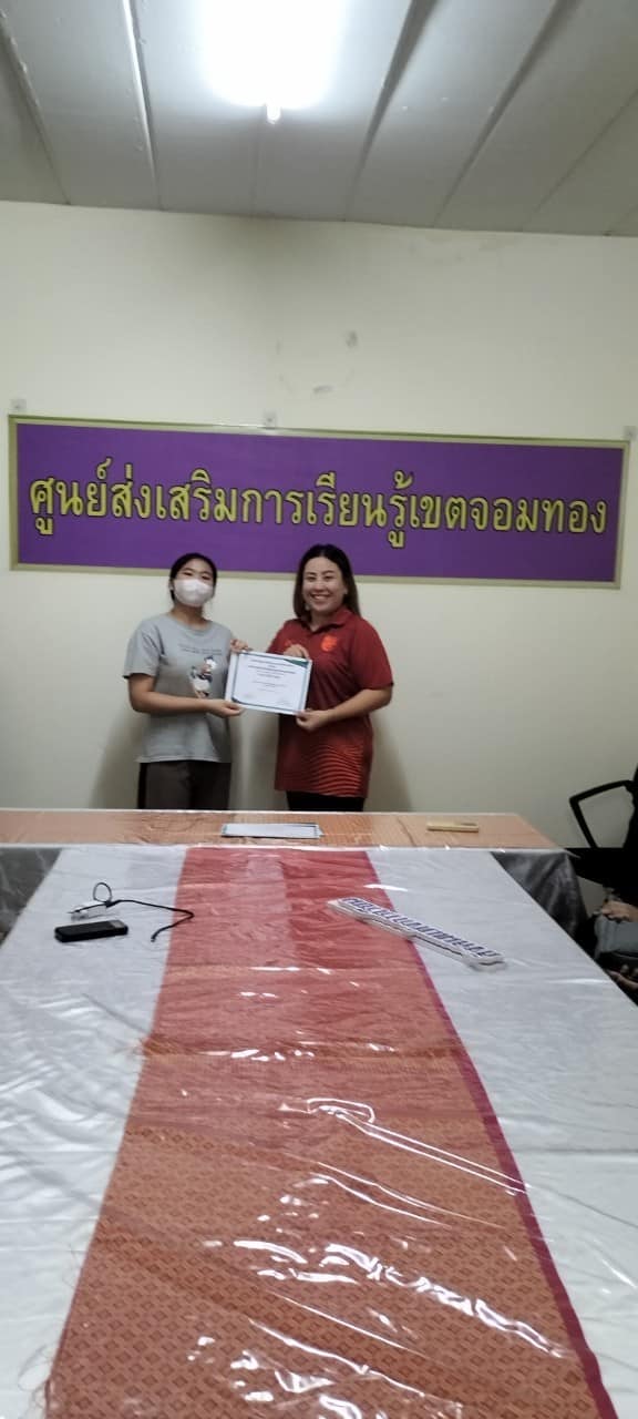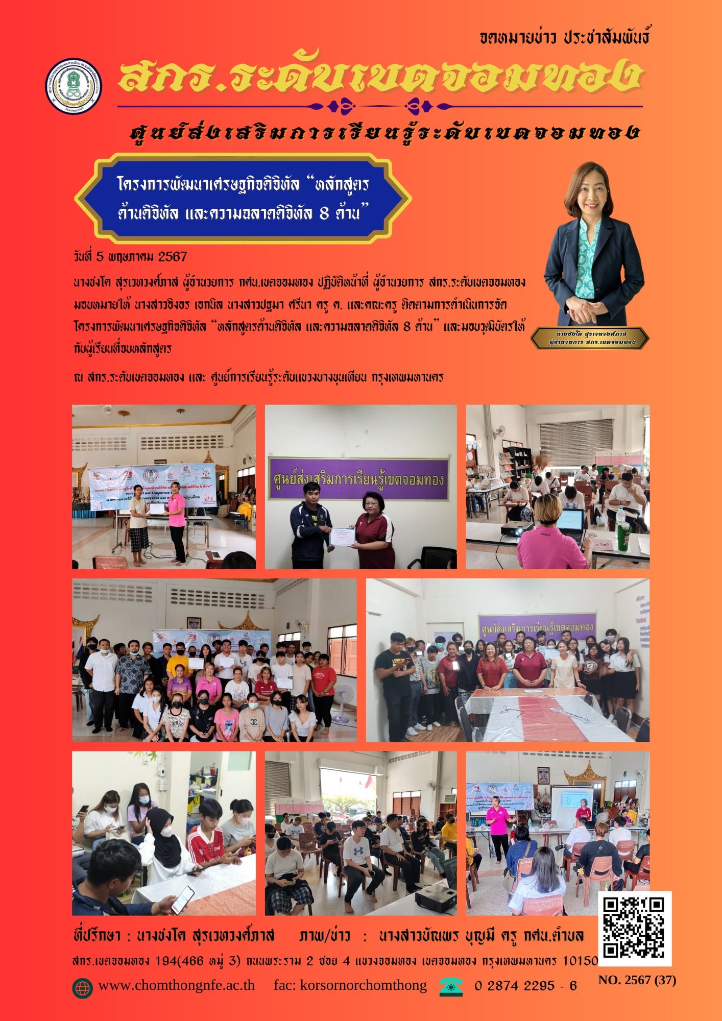 นางชงโค สุรเวทวงศ์ภาส ผู้อำนวยการ กศน.เขตจอมทอง ปฏิบัติหน้าที่ ผู้อำนวยการ สกร.ระดับเขตจอมทอง มอบหมายให้ นางสาวอิงอร เอกนิล นางสาวปฐมา ศรีนา ครู ค. และคณะครู ติดตามการดำเนินการจัดโครงการพัฒนาเศรษฐกิจดิจิทัล “หลักสูตรด้านดิจิทัล และความฉลาดดิจิทัล 8 ด้าน” และมอบวุฒิบัตรให้กับผู้เรียนที่จบหลักสูตร