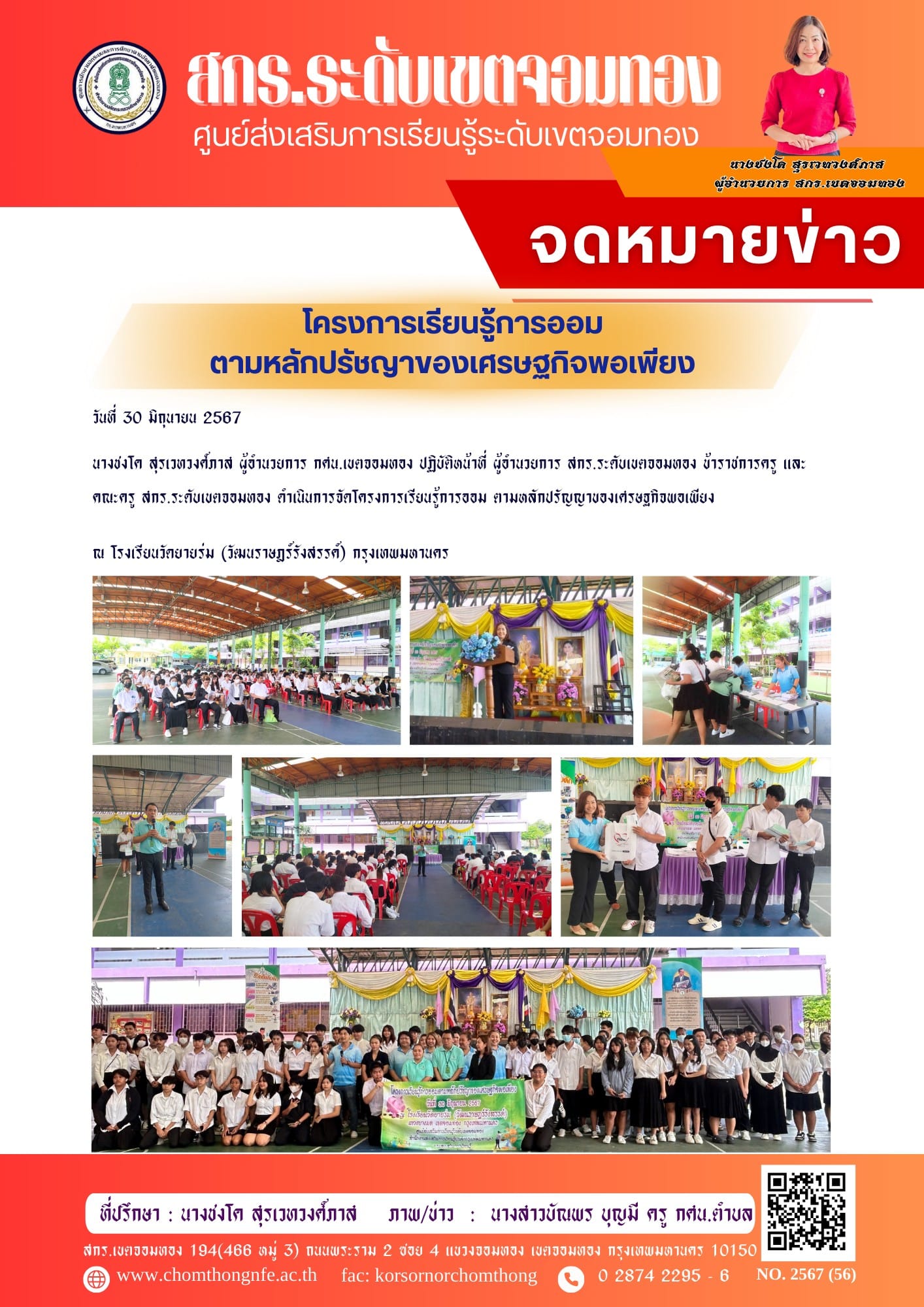 วันที่ 30 มิถุนายน 2567 โครงการเรียนรู้การออมตามหลักปรัชญาของเศรษฐกิจพอเพียง