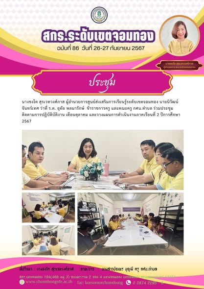 29 ตุลาคม 2567นางชงโค สุรเวทวงศ์ภาส ผู้อำนวยการศูนย์ส่งเสริมการเรียนรู้ระดับเขตจอมทอง นายนิวัฒน์ จัน