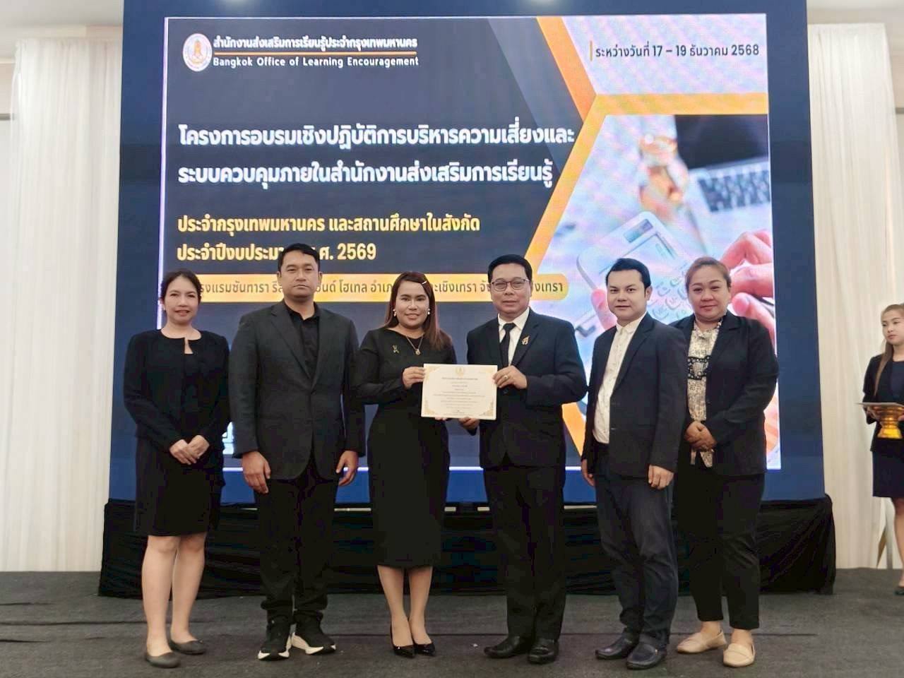 ระหว่างวันที่ 17 - 19 ธันวาคม 2568 นางสาวบุสรา นิลเต๊ะ ผู้อำนวยการศูนย์ส่งเสริมการเรียนรู้ระดับเขตบางบอน รักษาการในตำแหน่งผู้อำนวยการศูนย์ส่งเสริมการเรียนรู้ระดับเขตจอมทอง นำนายนิวัฒน์ จันทร์เทศ ว่าที่ร้อยตรี อุทัย พลมารักษ์ ข้าราชการครู นางสาวฉวีวรรณ หวานฉ่ำ และนางสาวชญาภา ศรีสวัสดิ์ ครูศูนย์การเรียนรู้ เข้าร่วมโครงการอบรมเชิงปฎิบัติการบริหารความเสี่ยงและระบบควมคุมภายในสำนักงานส่งเสริมการเรียนรู้ประจำกรุงเทพมหานคร และสถาบันการศึกษาในสังกัด ประจำปีงบประมาณ พ.ศ. 2568 ณ โรงแรมซันทารา รีสอร์ท แอนด์โฮเทล อำเภอเมือง จังหวัดฉะเชิงเทรา