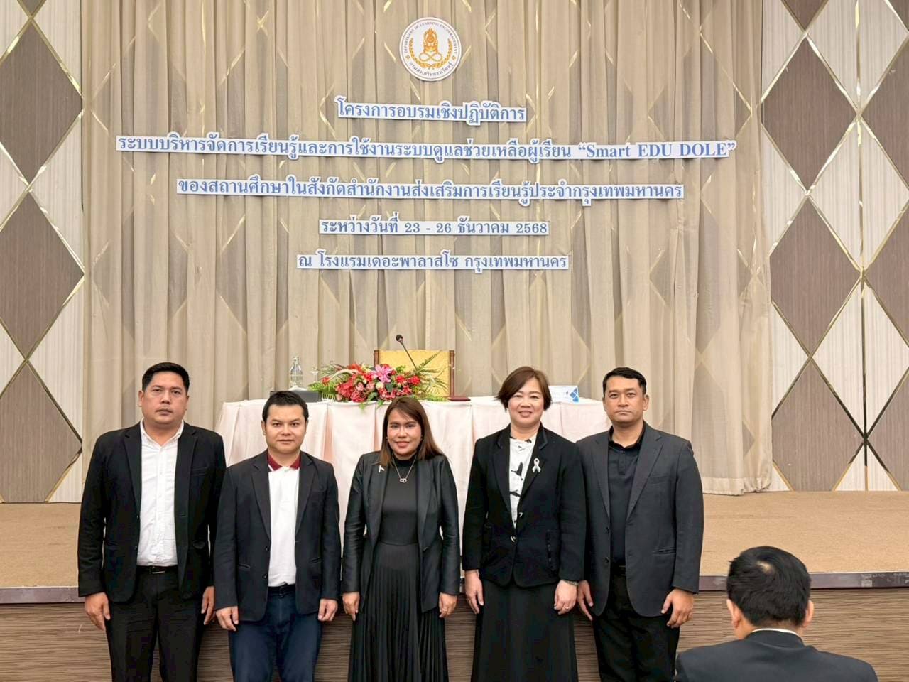 23 - 26 ธันวาคม 2568 นางสาวบุสรา นิลเต๊ะ ผู้อำนวยการศูนย์ส่งเสริมการเรียนรู้ระดับเขตบางบอน รักษาการในตำแหน่ง ผู้อำนวยการศูนย์ส่งเสริมการเรียนรู้ระดับเขตจอมทอง นายนิวัฒน์ จันทร์เทศ ว่าที่ร้อยตรี อุทัย พลมารักษ์ นางสาวอิงอร เอกนิล และว่าที่ร้อยตรี ศุภโชค สุวรรณวัฒน์ เข้าร่วม โครงการอบรมเชิงปฏิบัติการระบบบริหารจัดการเรียนรู้และการใช้งานระบบดูแลช่วยเหลือผู้เรียน “Smart S=EDU DOLE” ของสถานศึกษาในสังกัดสำนักงานส่งเสริมการเรียนรู้ประจำกรุงเทพมหานคร ประจำปีงบประมาณ พ.ศ. 2569 ณ ห้องประชุม Grand Palazzo ชั้น 7 โรงแรมเดอะพาลาสโซ่ กรุงเทพมหานคร