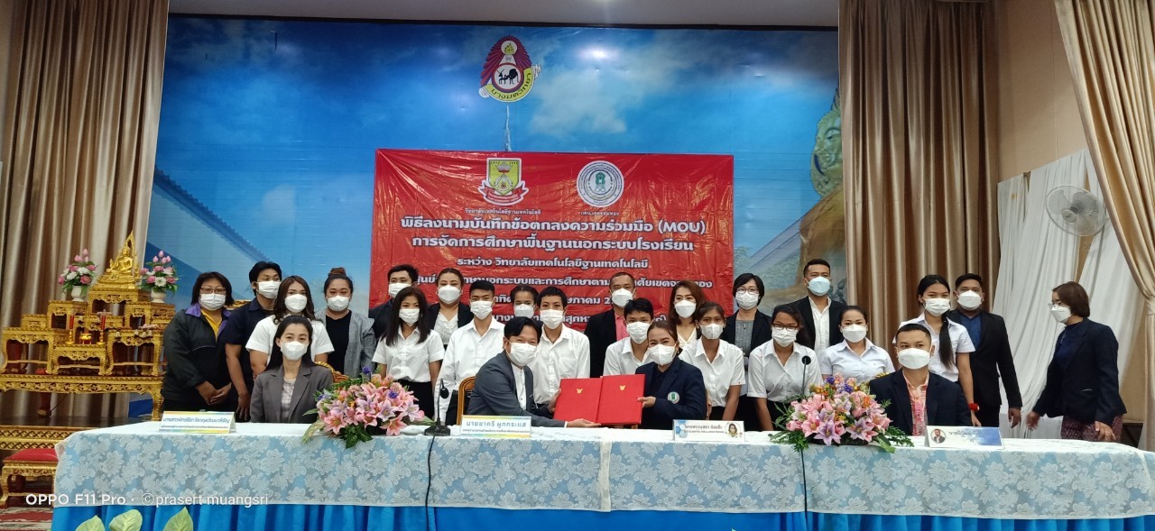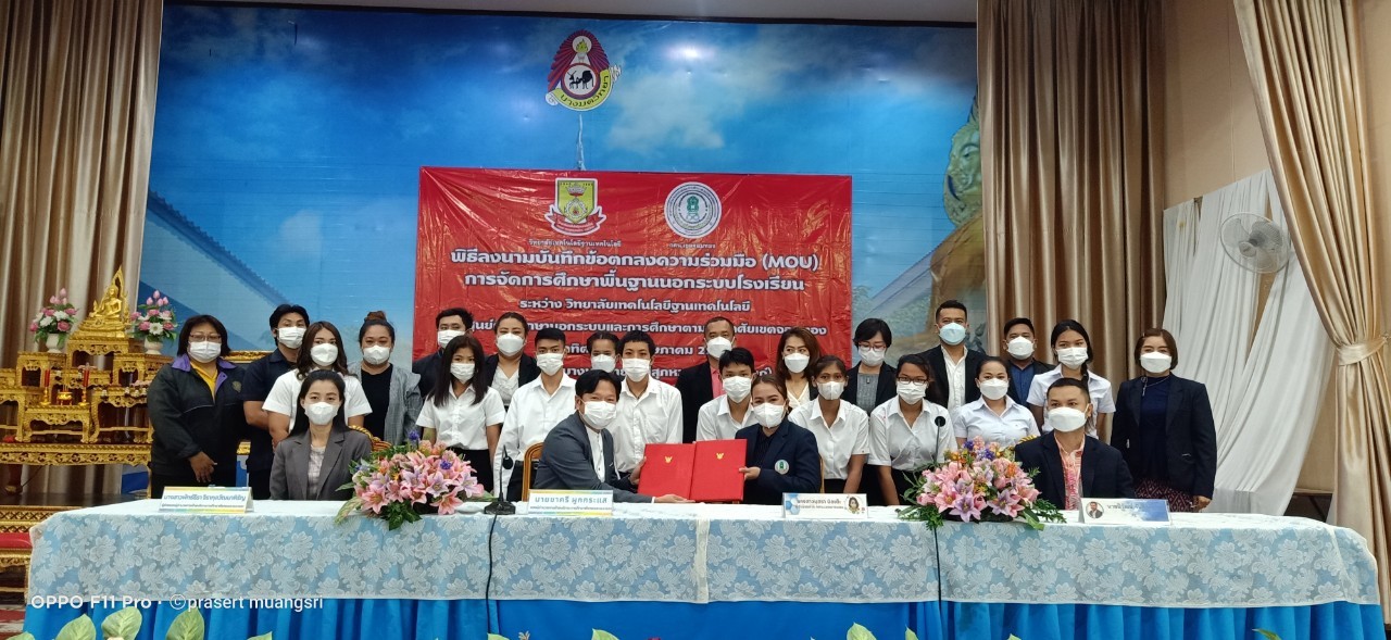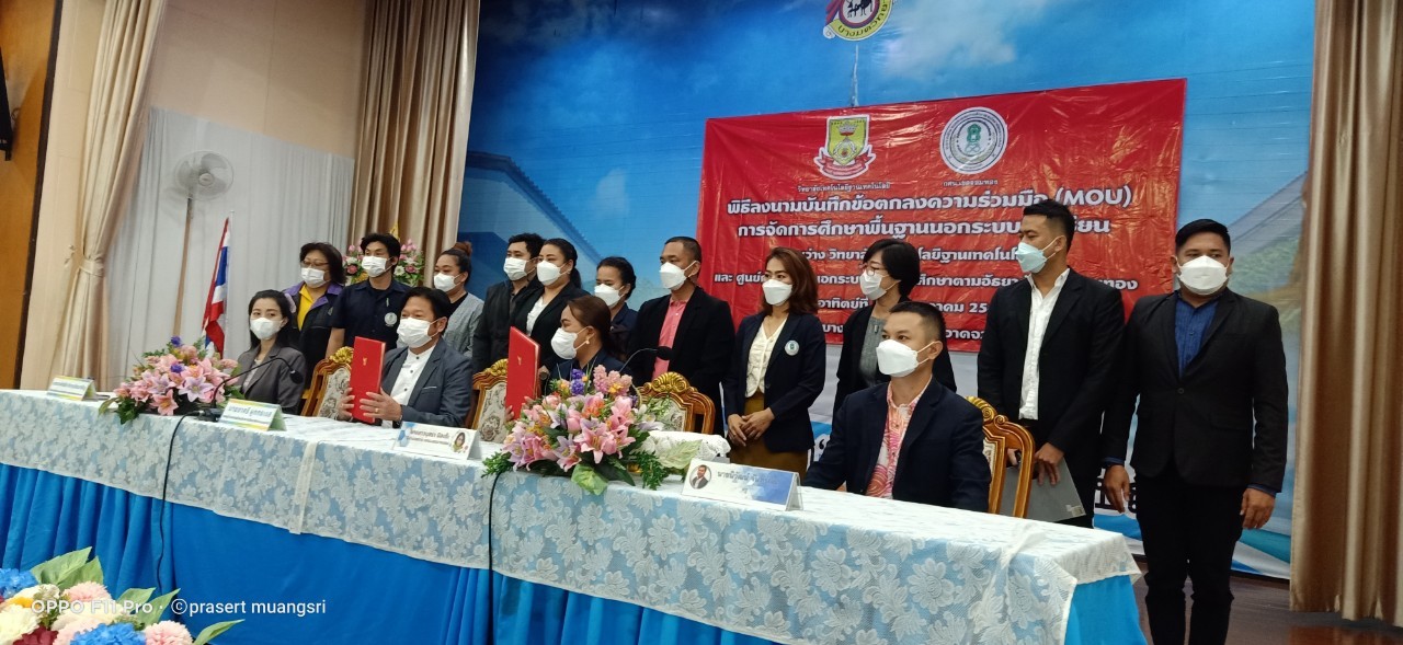 วันที่ 29 พฤษภาคม 2565 นางสาวบุสรา นิลเต๊ะ ผู้อำนวยการสถานศึกษา ได้เป็นประทานในพิธีปฐมนิเทศน์ นักศึกษาใหม่ กศน.เขตจอมทอง และร่วมพิธีลงนามบันทึกข้อตกลงความร่วมมือ (MOU) การจัดการศึกษาขั้นพื้นฐานนอกระบบโรงเรียน ระหว่าง วิทยาลัยเทคโนโลยีฐานเทคโนโลยี และ ศูนย์การศึกษานอกระบบและกาศึกษาตามอัธยาศัยเขตจอมทอง ณ โรงเรียนบางมดวิทยา (สีสุกหวาดจวนอุปถัมภ์)