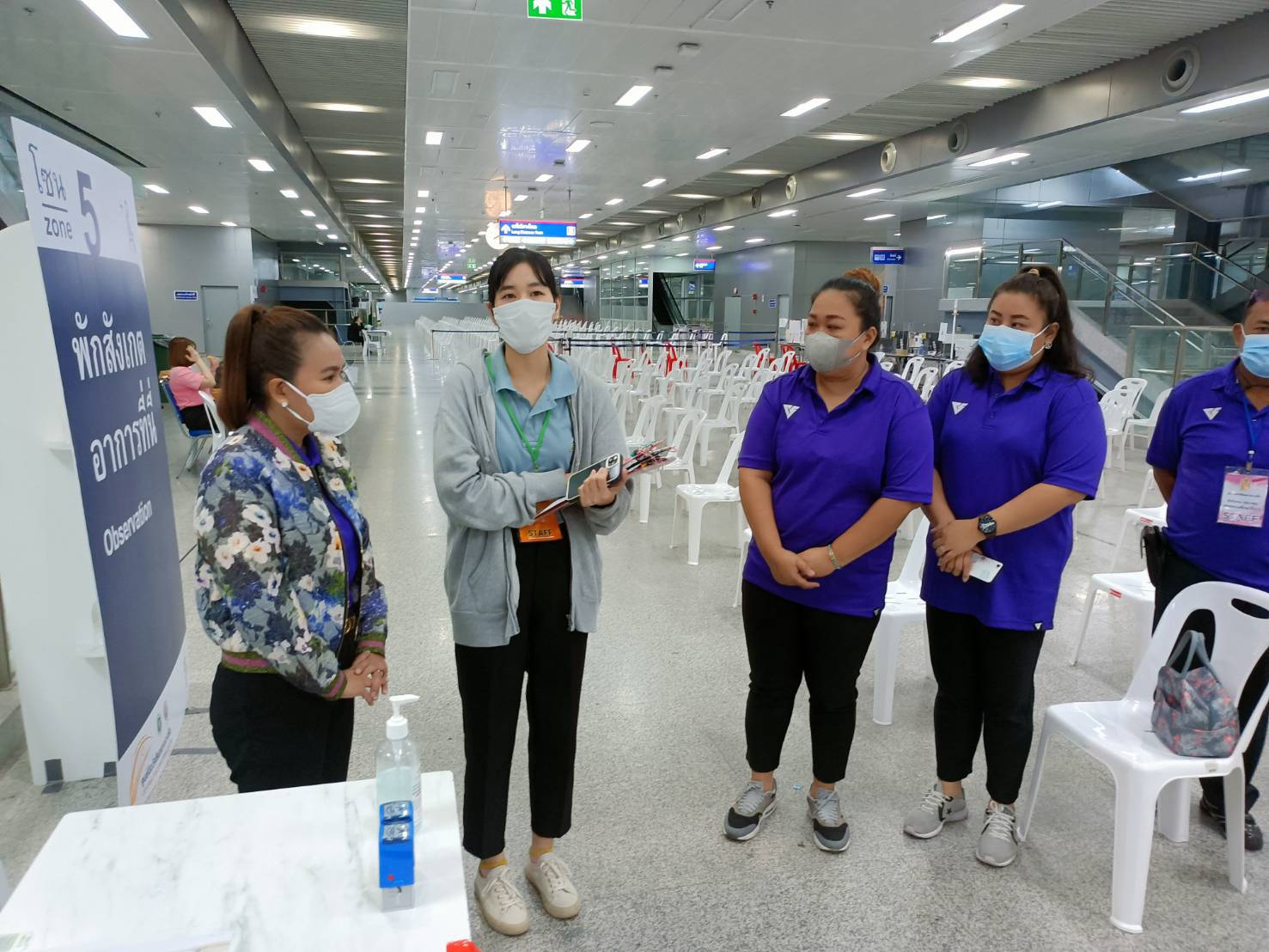 วันที่ 28 มิถุนายน 65 นางสาวบุสรา นิลเต๊ะ ผู้อำนวยการสถานศึกษา พร้อมคณะครู กศน.เขตจอมทอง ปฎิบัติหน้าที่จิตอาสาอำนวยสะดวก กลุ่ม C จุดที่ 4 พักสังเกตอาการ สำหรับผู้เข้ารับการฉีดวัคซีนป้องกัน Covid - 19 ณ สถานีกลางบางซื่อ เขตจตุจักร กรุงเทพมหานคร
