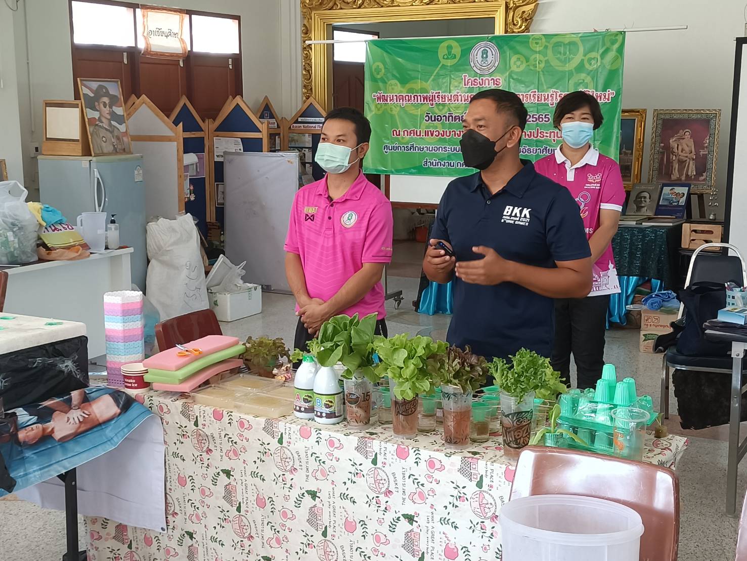 นิลเต๊ะ ผู้อำนวยการ กศน.เขตบางบอน รักษาการในตำแหน่งผู้อำนวยการ กศน.เขตจอมทอง ได้มอบหมายให้คณะครู กศน.เขตจอมทอง จัดกิจกรรมการศึกษาเพื่อพัฒนาชุมชนและสังคมโครงการส่งเสริมการเรียนรู้เพื่อพึ่งพาตนเอง ได้สอนขั้นตอนการปลูกในฟองน้ำเพื่อให้ผู้เรียนมีความรู้ ในการปลูกรับประทานโดยไม่ต้องอาศัยดิน และสามารถนำไปต่อยอดในการสร้างรายได้ที่ยั่งยืน ณ วัดบางประทุนนอก เขตจอมทอง กรุงเทพมหานคร
