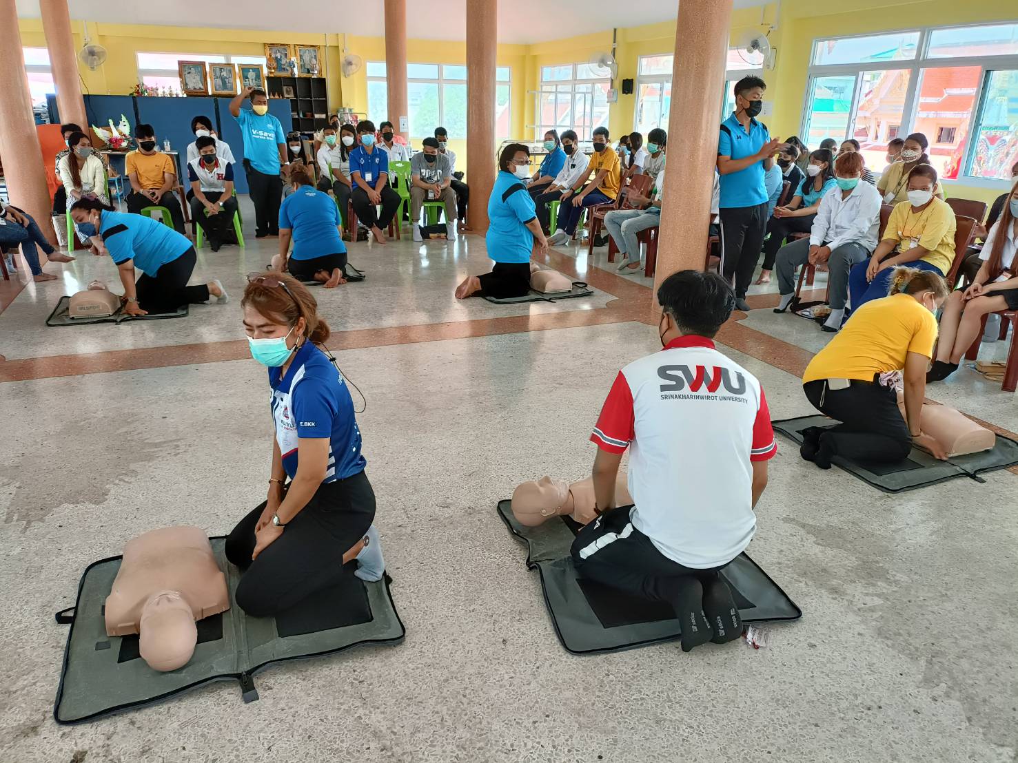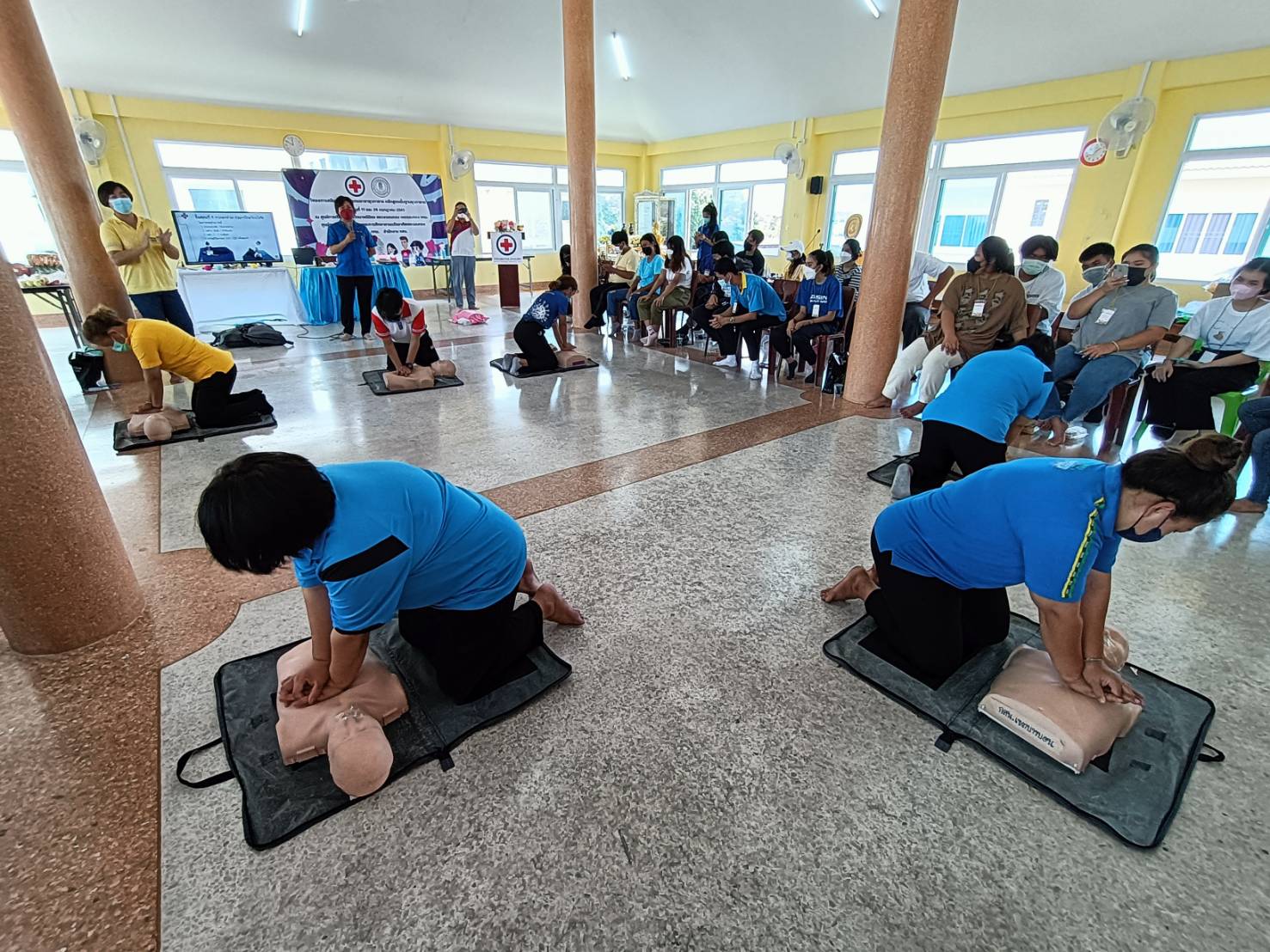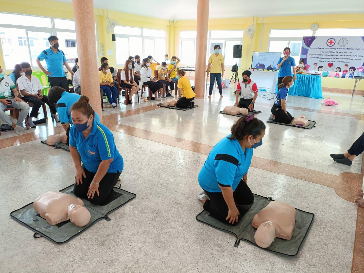 นิลเต๊ะ ผู้อำนวยการ กศน.เขตบางบอน รักษาการในตำแหน่งผู้อำนวยการ กศน.เขตจอมทอง ได้มอบหมายให้คณะครู กศน.เขตจอมทอง ดำเนินโครงการสนับสนุนอบรมยุวกาชาดหลักสูตรพื้นฐานยุวกาชาดเพื่อให้ผู้เข้าร่วมการอบรมมีความรู้และทักษะในเรื่องการปฐมพยาบาลและการช่วยฟื้นคืนชีพขั้นพื้นฐานเพื่อลดความรุ่นแรงและความสูญเสียที่เกิดขึ้นจากการประสบอันตราย โดยมีการอบรมทั้งรูปแบบออนไลน์และพบกลุ่ม ในวันที่ 17 และวันที่ 24 กรกฎาคม 65 ณ ศูนย์การเรียนรู้ชุมชนวัดนาคนิมิตร แขวงจอมทอง เขตจอมทอง กรุงเทพมหานคร
